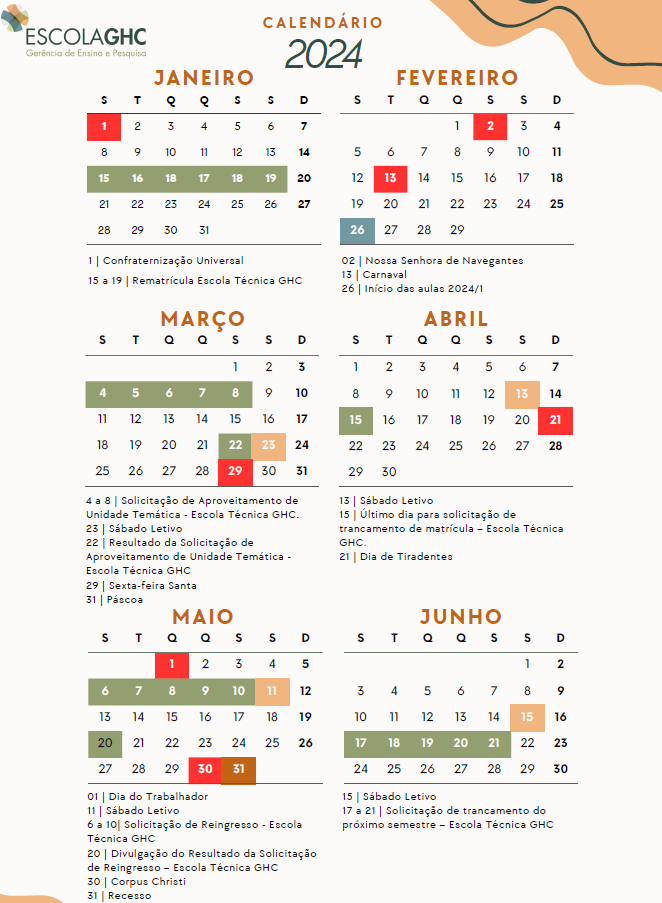 Calendário Escolar - Escola Técnica GHC