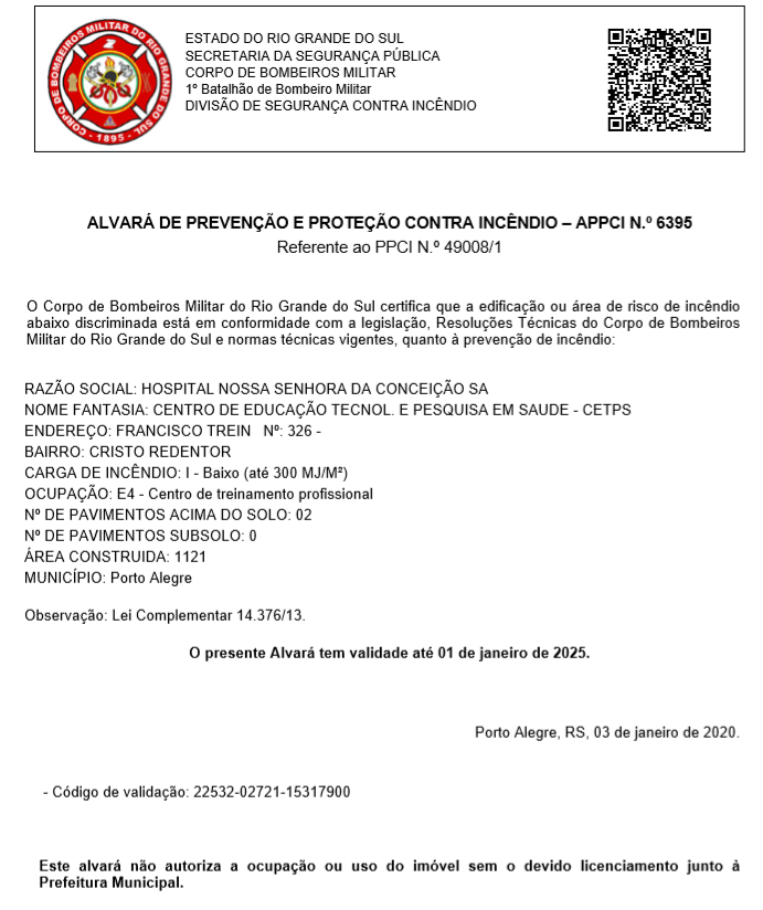 Educação Tecnológica e Pesquisa em Saúde do GHC obtém Alvará de