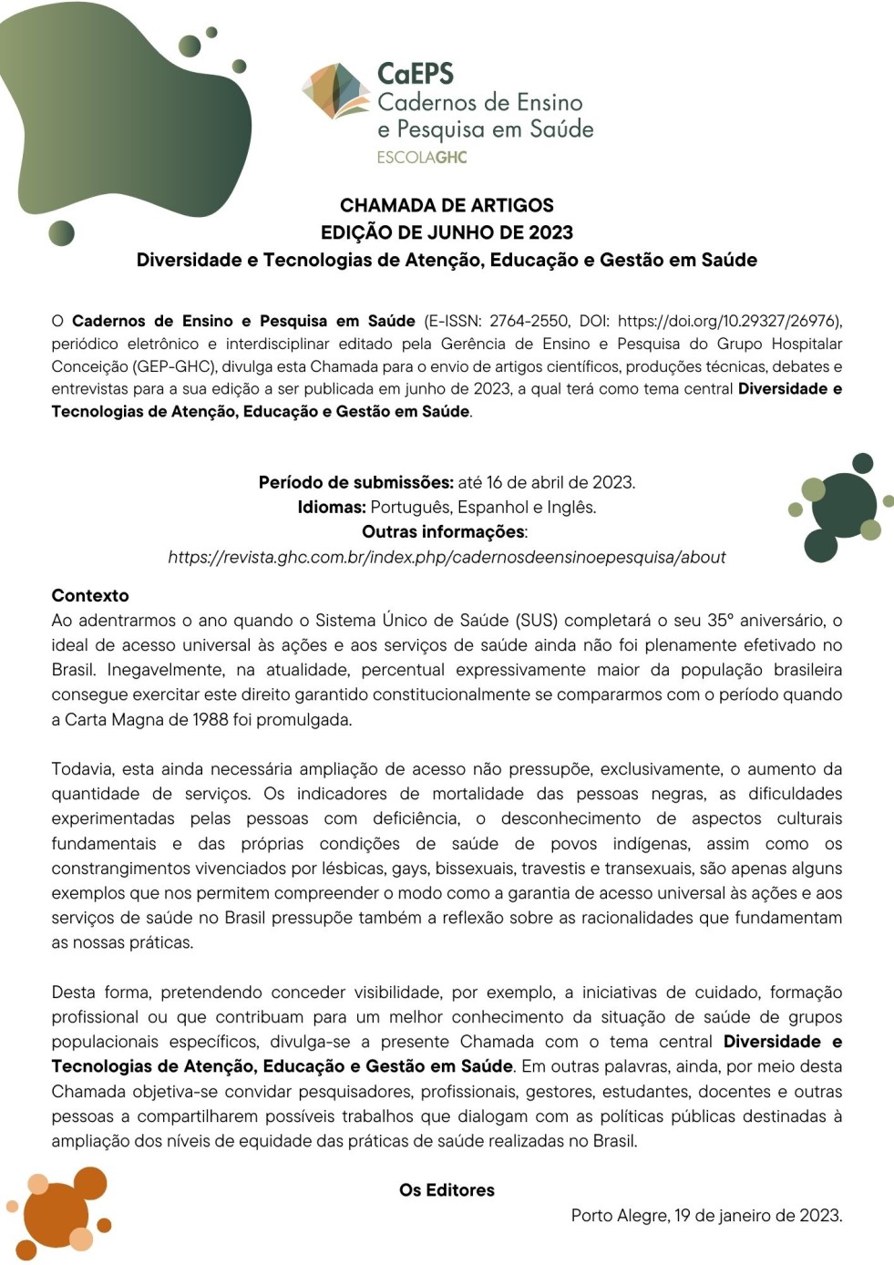Ensino e Pesquisa do Grupo Hospitalar Conceição. Tem