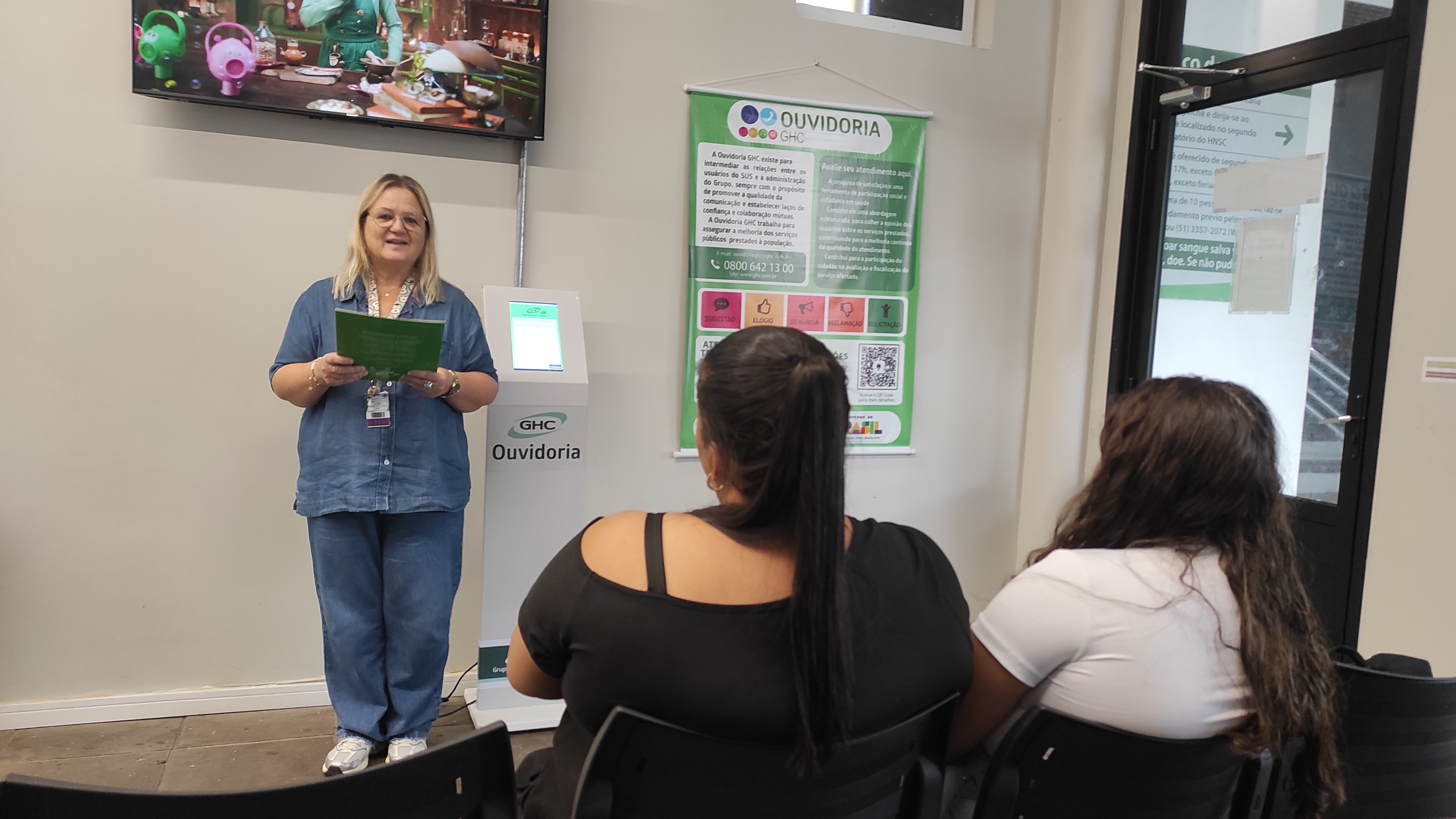 Hospital Conceição aguardando atendimento. A proposta consiste em transformar o tempo de espera por atendimento em um momento de acolhimento, por meio da leitura em voz alta de textos curtos. Após a leitura, são promovidas conversas leves com os participantes, incentivando a expressão de sensações e reflexões despertadas pelos textos. |